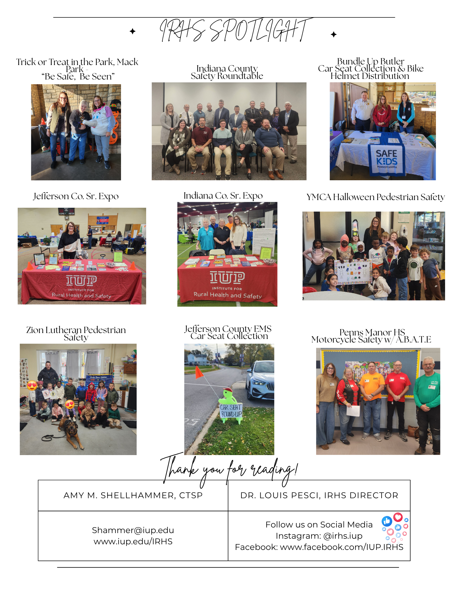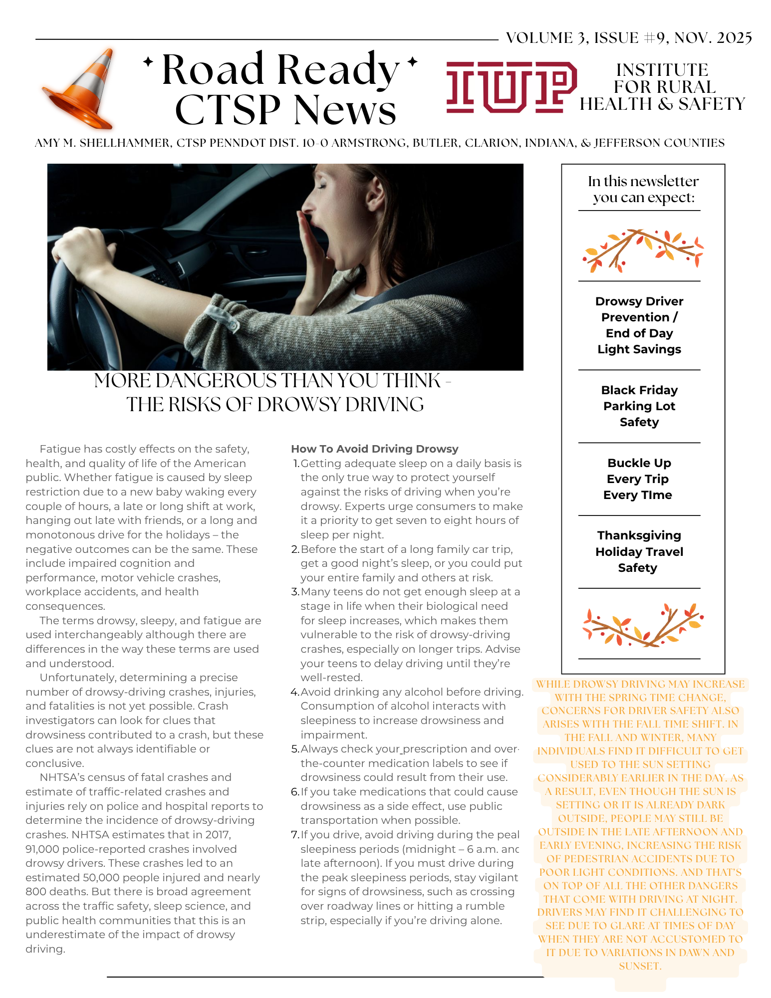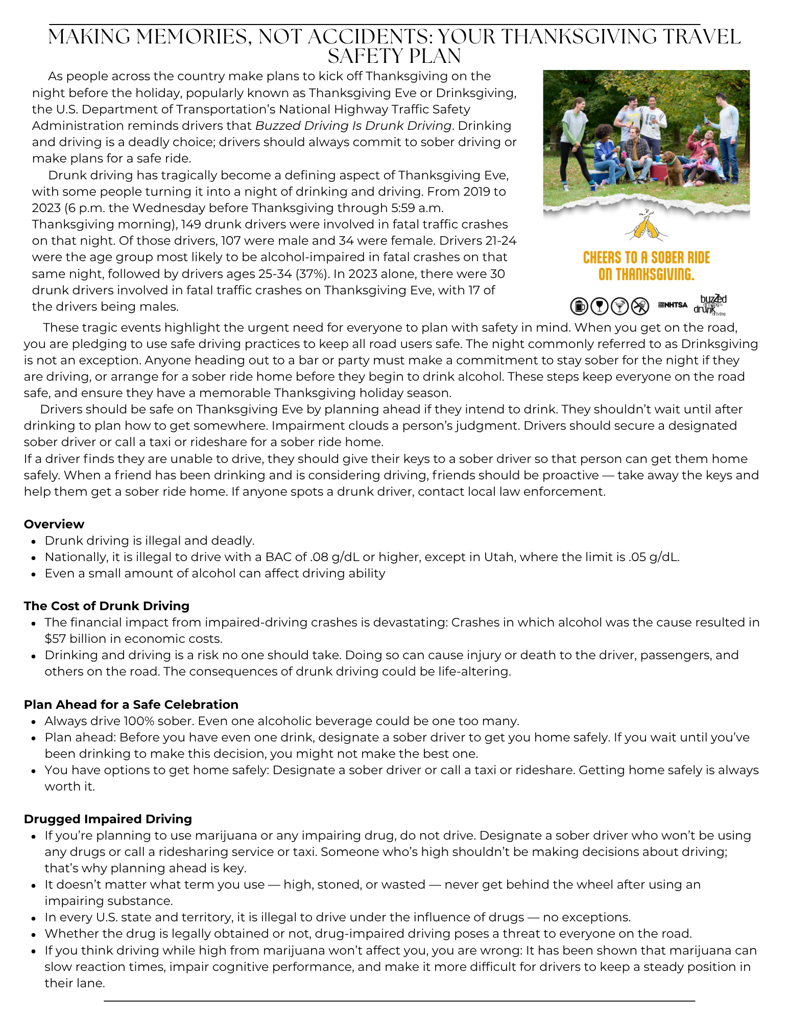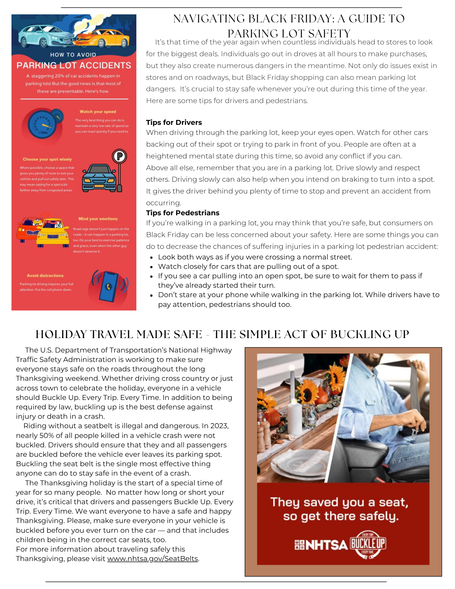 The holidays are quickly approaching; therefore, our November newsletter features information on how to safely navigate these upcoming special seasons. Please follow us on our social media pages listed in the newsletter for additional daily traffic safety tips.